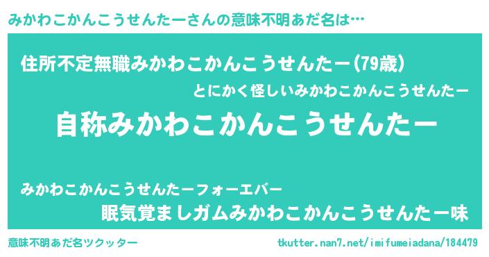 | 胡散臭い通販商品みたいなあだ名 | 『テレビで話題の高麗人参…その名も「みかわこかんこうせんたー」』 |