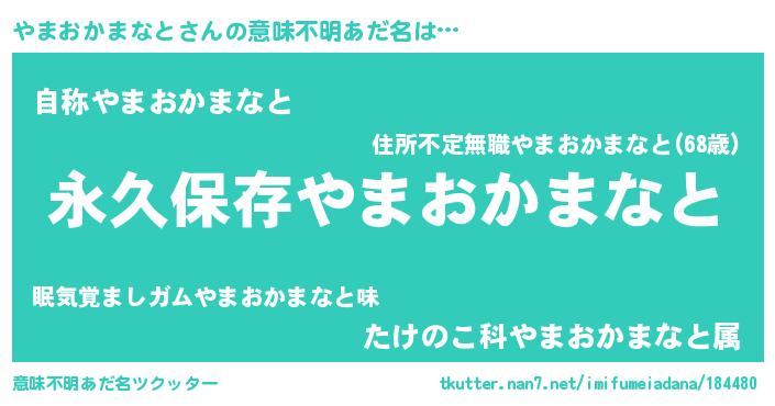 | 欧米人風あだ名 | 『やまおかまなと・ステッグマイヤー』 |