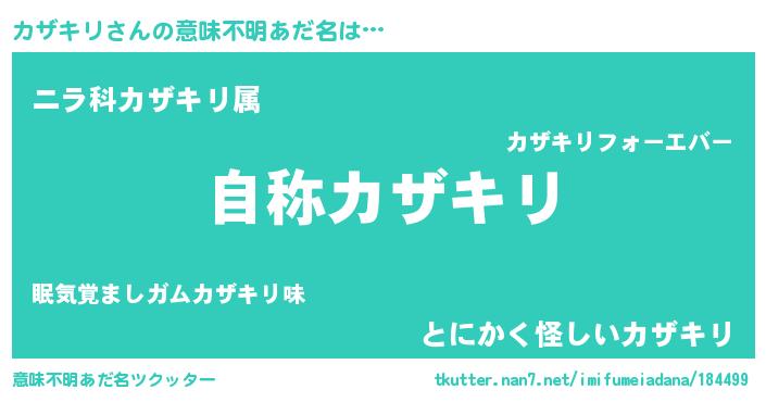 | 男性向けラノベタイトル風あだ名 | 『緋弾のカザキリ』『カザキリスレイヤー』 |