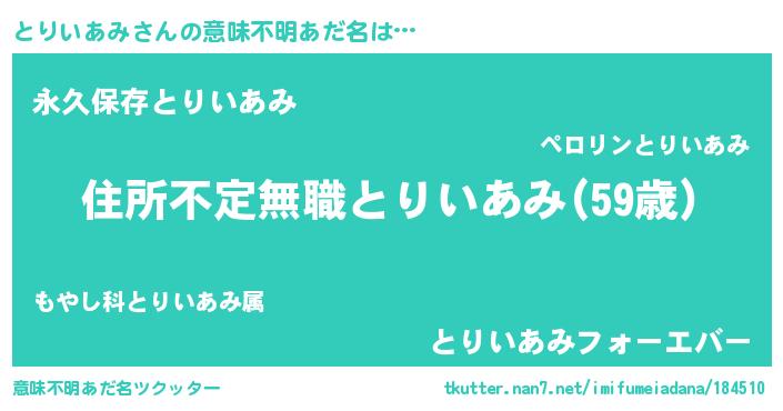 | ヘコむあだ名 | 『とりいあみ(爆)』『牛乳』 |