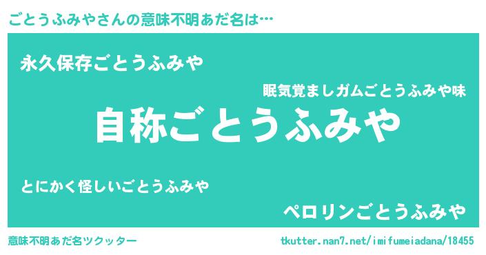 | 欧米人風あだ名 | 『ケンブリッジごとうふみや』 |