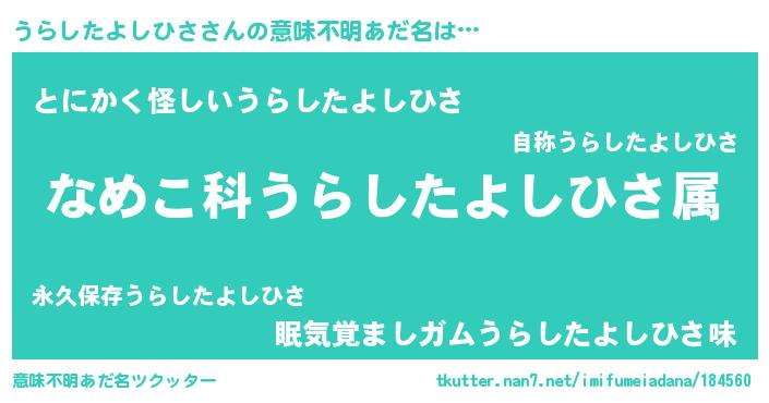 | 男性向けラノベタイトル風あだ名 | 『転生したらうらしたよしひさだった件』 |