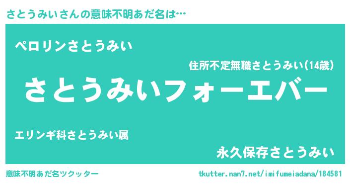 | 男性向けラノベタイトル風あだ名 | 『やはりさとうみいの青春ラブコメはまちがっている 』 |