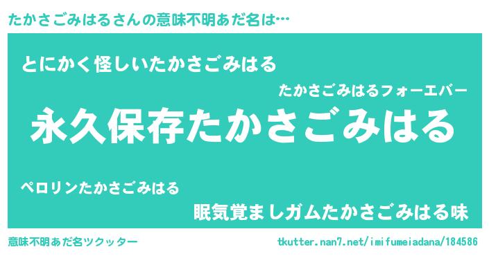 | 男性向けラノベタイトル風あだ名 | 『うちのたかさごみはるが世界を掌握している!』 |