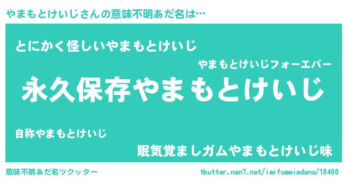 | 胡散臭い通販商品みたいなあだ名 | 『絶対に幸福をもたらす健康食品…その名も「やまもとけいじ」』 |