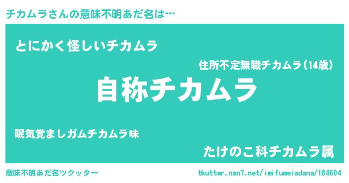 | ヒーロー風カッコイイあだ名 | 『究極戦士チカムラ』『魔戒騎士チカ』 |