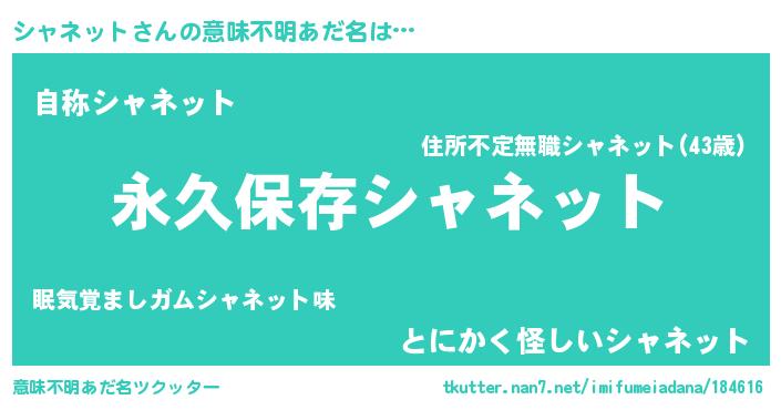 | 胡散臭い通販商品みたいなあだ名 | 『絶対に幸福をもたらす健康食品…その名も「シャネット」』 |