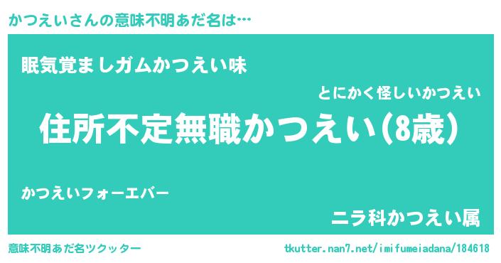 | 男性向けラノベタイトル風あだ名 | 『魔弾の王とかつえい』 |