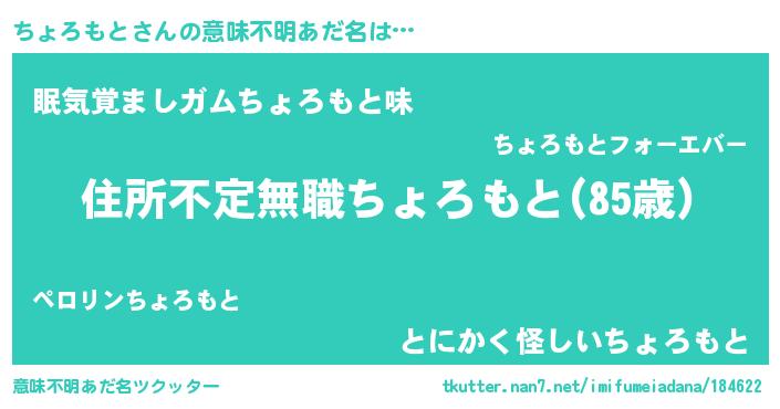 | 胡散臭い通販商品みたいなあだ名 | 『あなたにだけ特別に提供する世界で10本だけ現存している希少なブランデー…その名も「ちょろもと」』 |