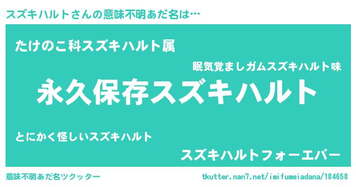 | ヘコむあだ名 | 『スズキハルト(苦笑)』『豆乳』 |