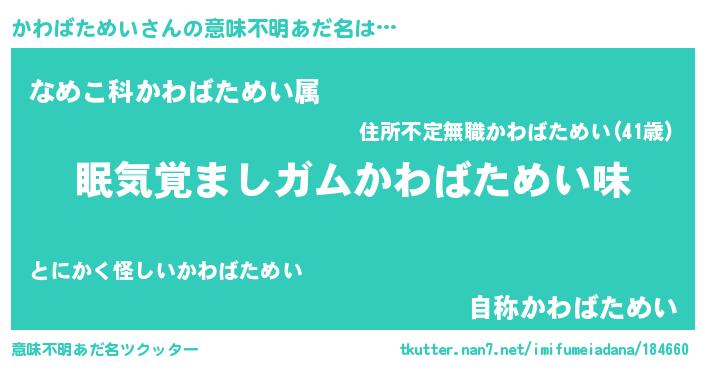 | 女子向けラノベタイトル風あだ名 | 『かわばためい恋絵巻』 |