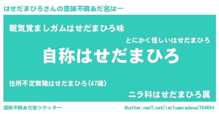 | ヒーロー風カッコイイあだ名 | 『究極戦士ハセダマヒロ』『天弓騎士ハセ』 |