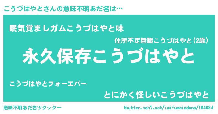 | ヘコむあだ名 | 『こうづはやと(笑)』『こうっちょ』 |