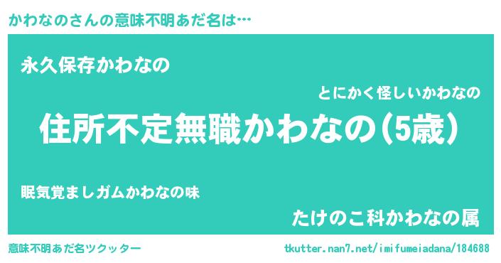 | 胡散臭い通販商品みたいなあだ名 | 『あなたにだけ特別に提供する100年もののヴィンテージワイン…その名も「かわなの」』 |