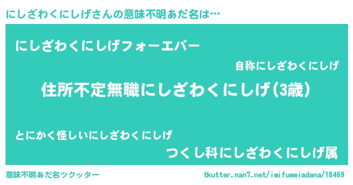 | 欧米人風あだ名 | 『ダレノガレにしざわくにしげ』 |