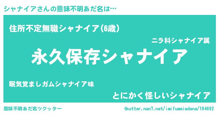 | ヘコむあだ名 | 『シャナイア(震え声)』『シャを』 |