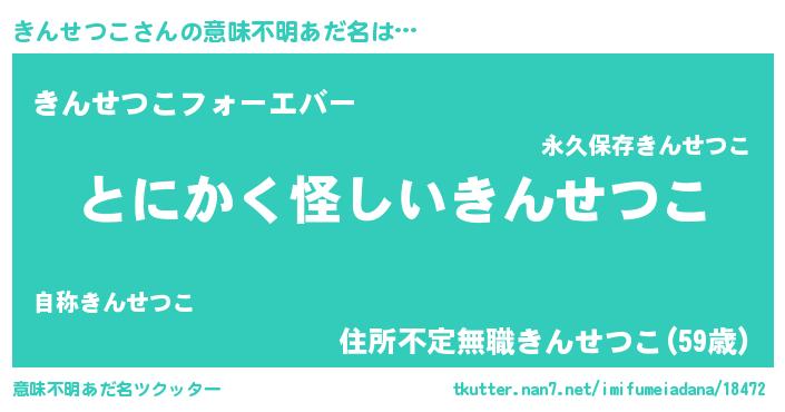 | 欧米人風あだ名 | 『きんせつこ・ステッグマイヤー』 |