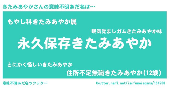 | ヘコむあだ名 | 『きたみあやか(震え声)』『きたっ子』 |