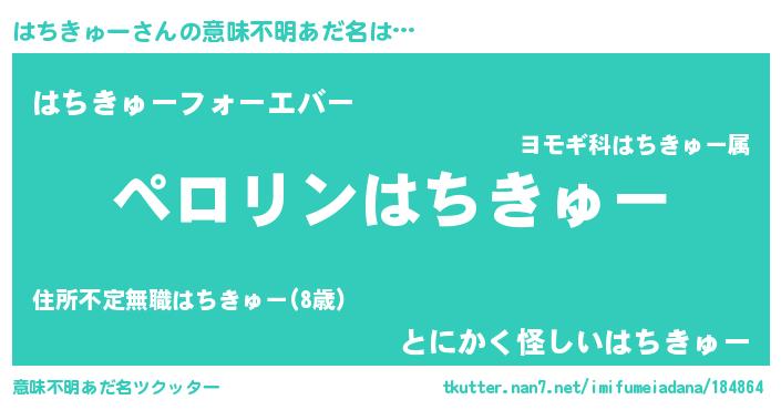 | 自動車の名前っぽいあだ名 | 『ハチティマ』『ハクア』『ハント』 |