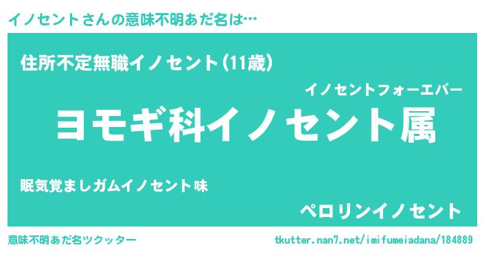 | ヒーロー風カッコイイあだ名 | 『仮面イノダー』『スーパーイノセント』 |