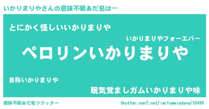 | 胡散臭い通販商品みたいなあだ名 | 『億万長者になれるブレスレット…その名も「いかりまりや」』 |