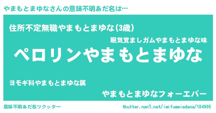 | 恥ずかしいあだ名 | 『プリティーやまもとまゆな』『やまちん』 |
