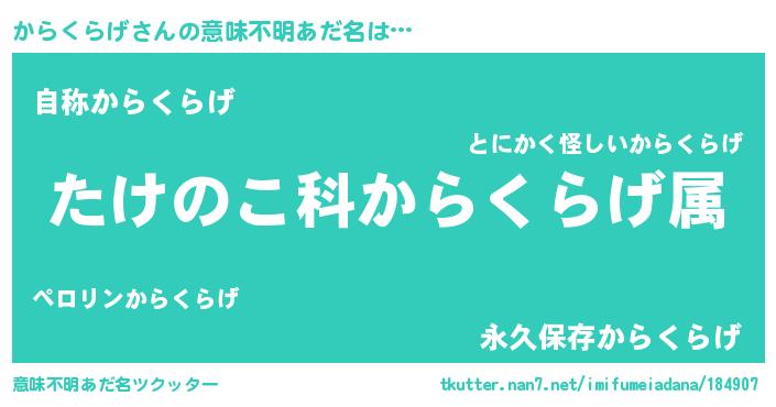 | 男性向けラノベタイトル風あだ名 | 『転生したらからくらげだった件』 |
