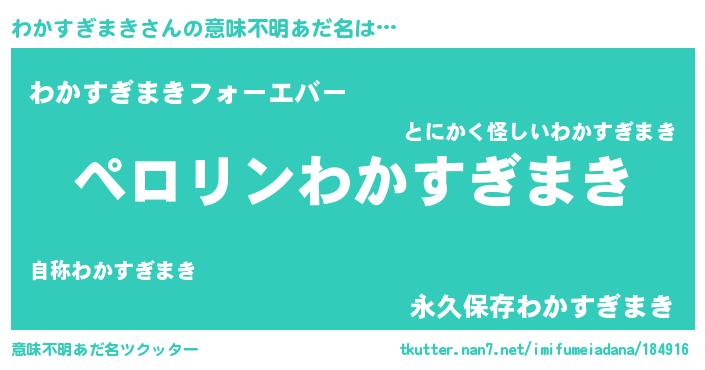| ポケモン風あだ名 | 『ワカチュウ』『ワカスダネ』 |