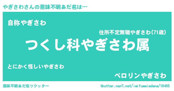 | 男性向けラノベタイトル風あだ名 | 『やぎさわ~年齢イコール彼女いない歴の魔法使い~』 |