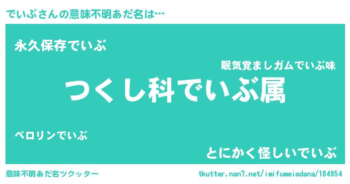 | 胡散臭い通販商品みたいなあだ名 | 『前代未聞の健康食品…その名も「でいぶ」』 |