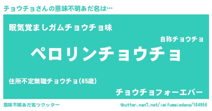 | 2回繰り返すあだ名 | 『チョチョ』『ぽそぽそ』『チチョョ』 |