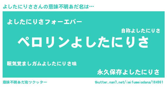 | 胡散臭い通販商品みたいなあだ名 | 『億万長者になれる霊験あらたかなお札…その名も「よしたにりさ」』 |