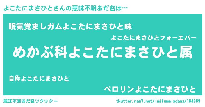 | 男性向けラノベタイトル風あだ名 | 『ヨコタニマサヒトスレイヤー』 |