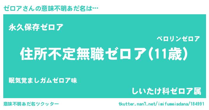 | ポケモン風あだ名 | 『ゼーロイ』『ゼニゼロ』『ゼロゴンZ』 |