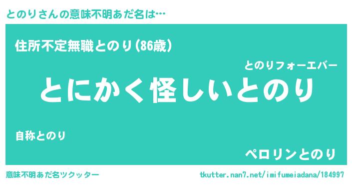 | 胡散臭い通販商品みたいなあだ名 | 『信頼と実績のサプリメント…その名も「とのり」』 |