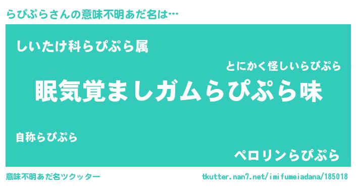| ピコ太郎風あだ名 | 『ララ太郎』『ラコ八郎』『ラピ一郎』 |
