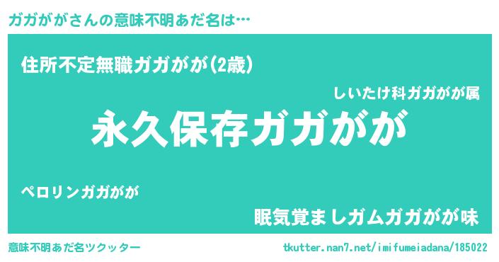 | 男性向けラノベタイトル風あだ名 | 『ガガががという概念が存在しない退屈な世界 』 |