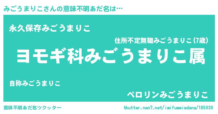 | 男性向けラノベタイトル風あだ名 | 『みごうまりこ~年齢イコール彼女いない歴の魔法使い~』 |