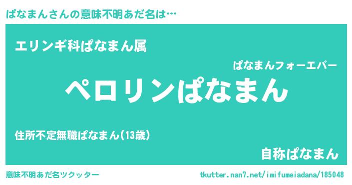 | 男性向けラノベタイトル風あだ名 | 『パナマンアートオンライン』 |