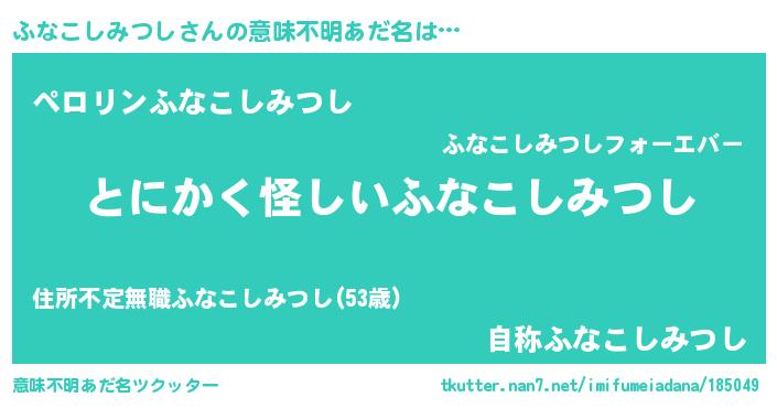 | 欧米人風あだ名 | 『ウサインふなこしみつし』 |