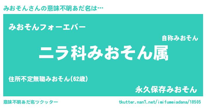 | ポケモン風あだ名 | 『ミオキング』『ミオソダネ』 |