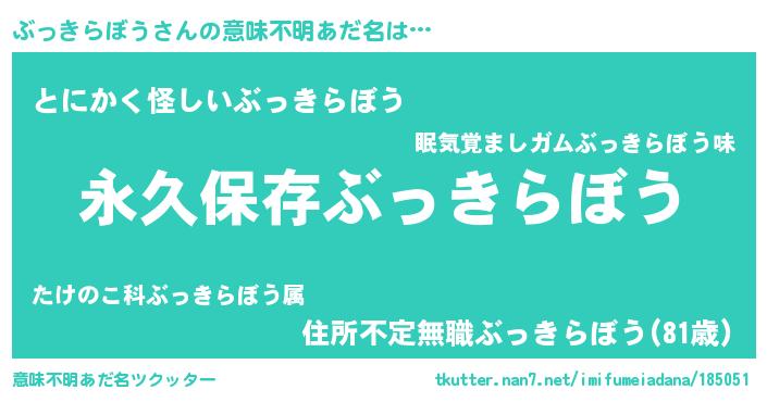 | 胡散臭い通販商品みたいなあだ名 | 『絶対に幸福をもたらす健康食品…その名も「ぶっきらぼう」』 |