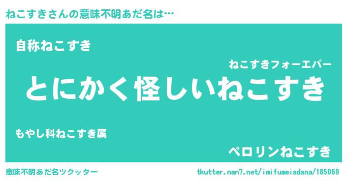| 欧米人風あだ名 | 『ウサインねこすき』『マイケルねこすき』 |