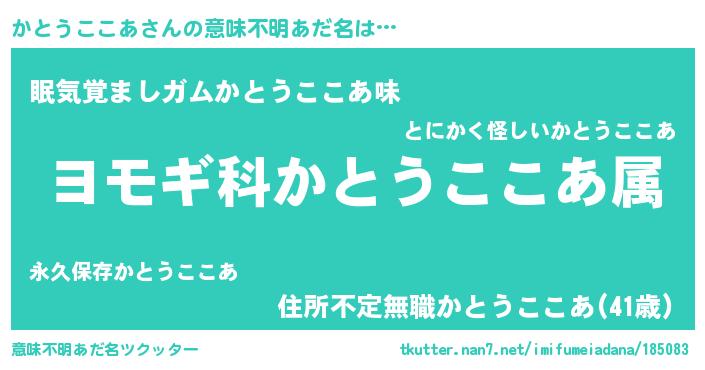 | 肩書あだ名 | 『かとうここあ中将』『かとうここあ教授』 |