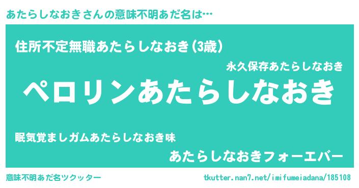 | 胡散臭い通販商品みたいなあだ名 | 『億万長者になれるブレスレット…その名も「あたらしなおき」』 |
