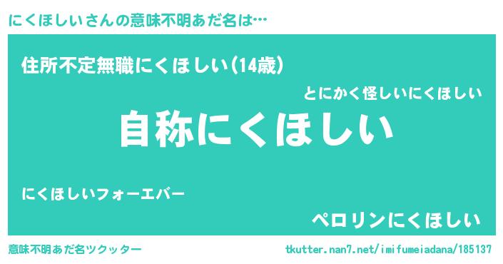 | 男性向けラノベタイトル風あだ名 | 『Re:にくほしいから始める異世界生活』 |