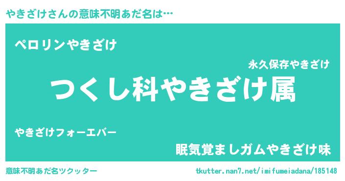 | 男性向けラノベタイトル風あだ名 | 『やきざけ~年齢イコール彼女いない歴の魔法使い~』 |