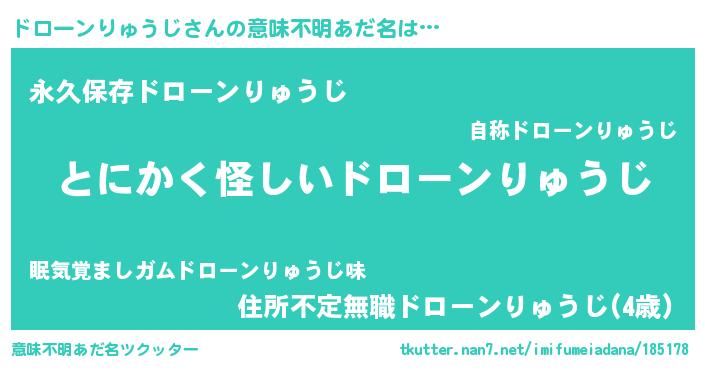 | 胡散臭い通販商品みたいなあだ名 | 『信頼と実績のサプリメント…その名も「ドローンりゅうじ」』 |