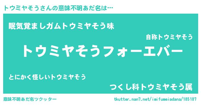| 欧米人風あだ名 | 『トウミヤそうクリステル』 |