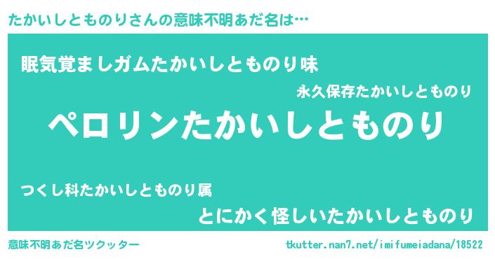 | 男性向けラノベタイトル風あだ名 | 『たかいしとものりの憂鬱』 |